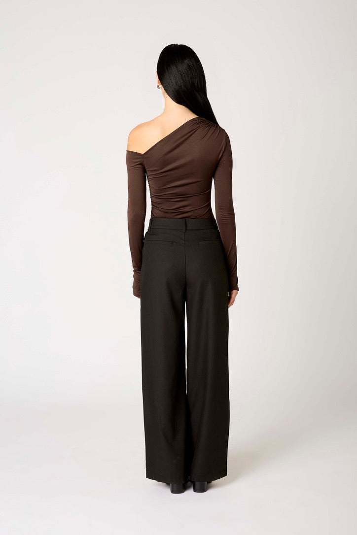 The Cleo Top features a sleek one-shoulder silhouette with a long sleeve and asymmetrical neckline that drapes beautifully across the collarbone. Designed in a stretchy, body-hugging fit, it contours smoothly and layers easily—an elevated essential with just the right amount of shape.