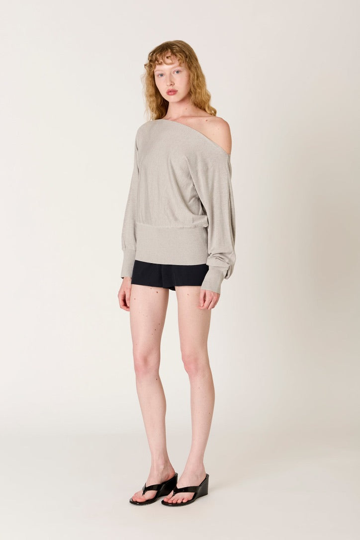 The Sabina Sweater creates a refined contrast between its relaxed blouson silhouette and a fitted, body-skimming bodice. Knit from a lightweight fine-gauge yarn, it features a ribbed waistband that adds subtle structure and definition to the waist. The simple pull-on closure ensures a smooth, uncomplicated fit that transitions easily from day to night.